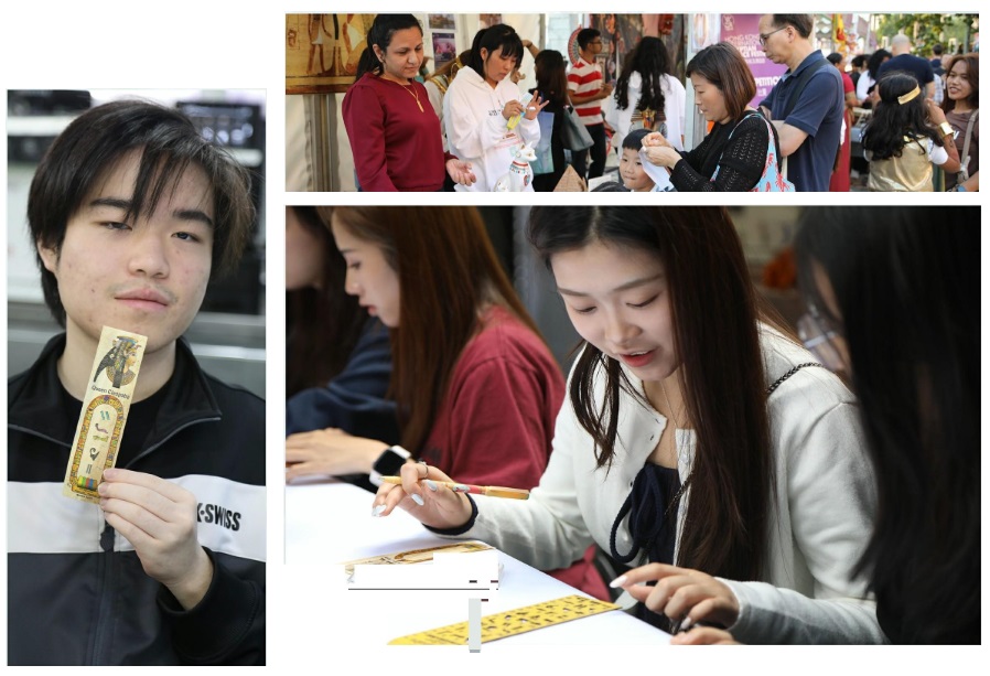 1• Artistic Skill Development: Teach the principles of Egyptian art (frontalism, symbolism, use of color) and the practical skills of drawing and painting hieroglyphic characters on authentic mediums like papyrus sheets.